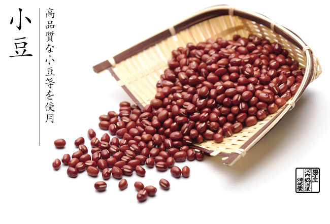 羊羹に使用される小豆は、「豆の王様」と呼ばれあらゆる素材の中で一番品質が問われます。 当社の小豆は産地と製法の裏づけがとれた高品質な小豆等を使用しています。 品質の劣る素材を用いて味と安全性を保つ手段などあり得ないからです。