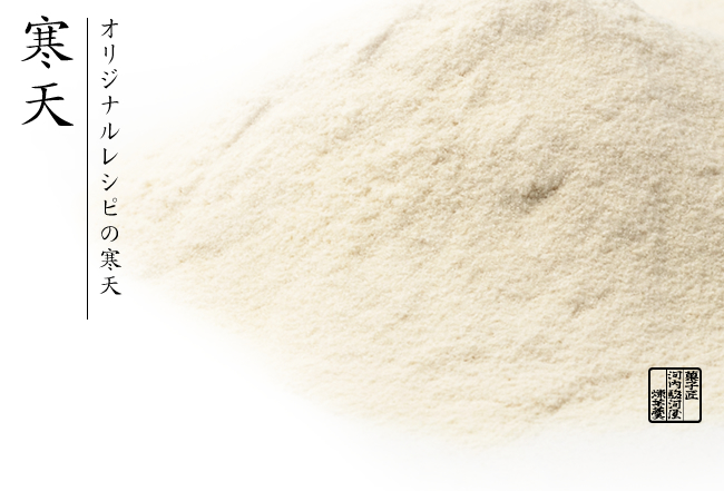 寒天の原材料はテングサ、オゴノリといった天然の海草ですが、 ソフトさ、食感、粘りなどを私どもの菓子に最適な度合いにマッチングさせるため、 品質・製法ともに日本一の伊那の業者に当社オリジナルレシピの寒天を依頼生産していただいております。