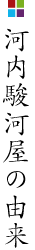 「駿河屋」を名乗る菓子舗は数多くございますが、当家「河内駿河屋」は 京都先斗町駿河屋より、 正式にのれん分けを受けて大阪のこの地に店を構えました。 伝統とは、一途昔に従うだけのものではなく、代々工夫と研鑽を積み重ねてこそ 生き続けるものです。 河内駿河屋が導入した数々の最新生産技術も、決して手間を惜しみ 安易な量産を行うものではございません。 現代の厳しい衛生基準をクリアし、 常に安定した品質の製品をより多くの方に、お届けするための精進の一環と考えております。