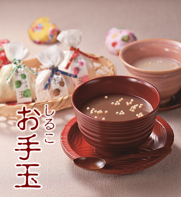 優雅で上品な甘味が、お口の中で広がります。一袋一袋、日本の自然がほほえんでいます。 種類は「お手玉しるこ」「お手玉くずゆ」「お手玉くずゆ(抹茶)」の3種類があります。 心あたたまる贈り物としてぜひどうぞ。