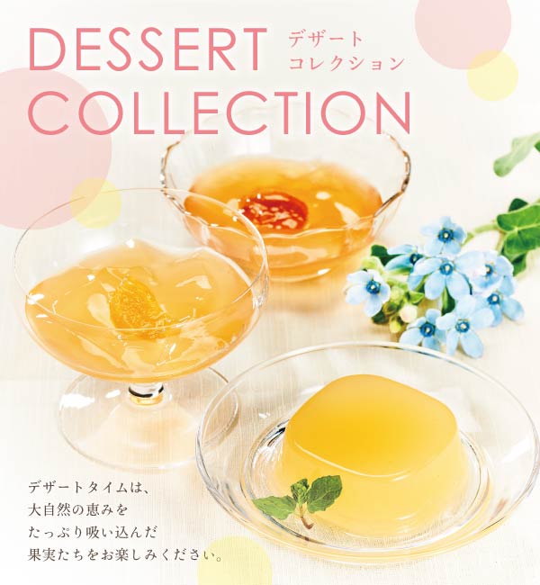 国内産白桃の瑞々しい果肉をたっぷり使った爽やかな甘さの「白桃ジュレ」。ほどよい酸味の山形県産ラ・フランスは上品な香りとまろやかな舌触りをそのまま生かし「ラフランスジュレ」に。ジューシィでとろけるような食感の「マンゴージュレ」。甘夏ジェリー・ピーチジェリー・グレープジェリー。新鮮な果汁を丸ごととじこめた本格派「フルーツジェリー」