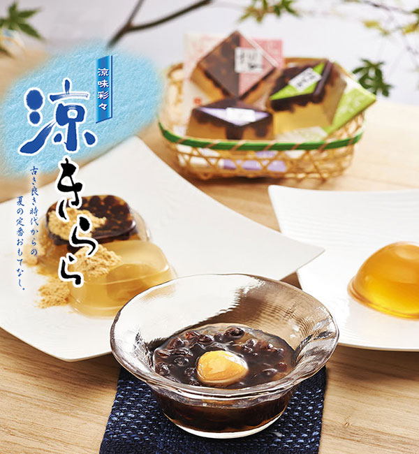 上質の寒天、小豆を使用した冷やし「寒天ぜんざい」、冷やし「寒天栗ぜんざい」。