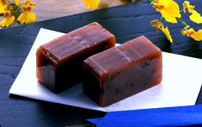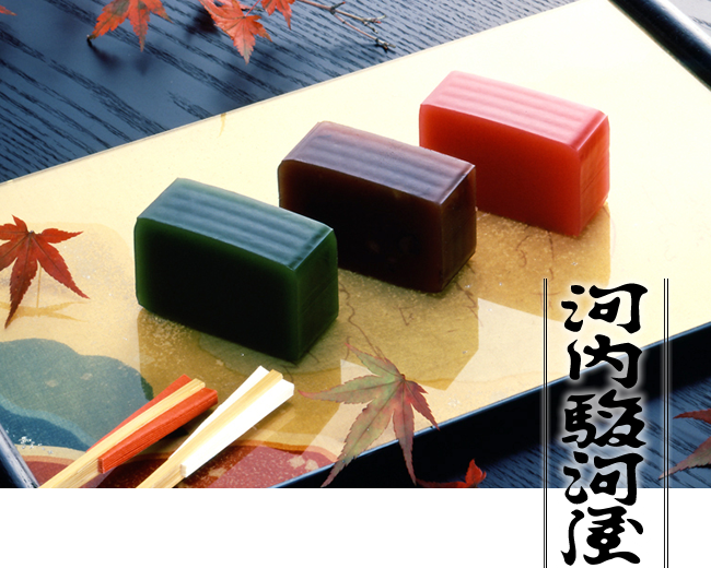 河内駿河屋を代表とする「煉羊羹」をはじめ、商品すべての素材1つ1つにこだわり、最後まで手のぬくもりを忘れることなく愛情を込めて生産しております。お客様の元へ届くまで、決して手間を惜しまず、丁寧に仕上げたお菓子をどうぞお召し上がりくださいませ。