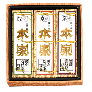 京の香り漂う高級羊羹となっております。 ご贈答品に、自家用に本格ようかんをお手軽にお楽しみください。 粒、煉、茶の三種類がございます。